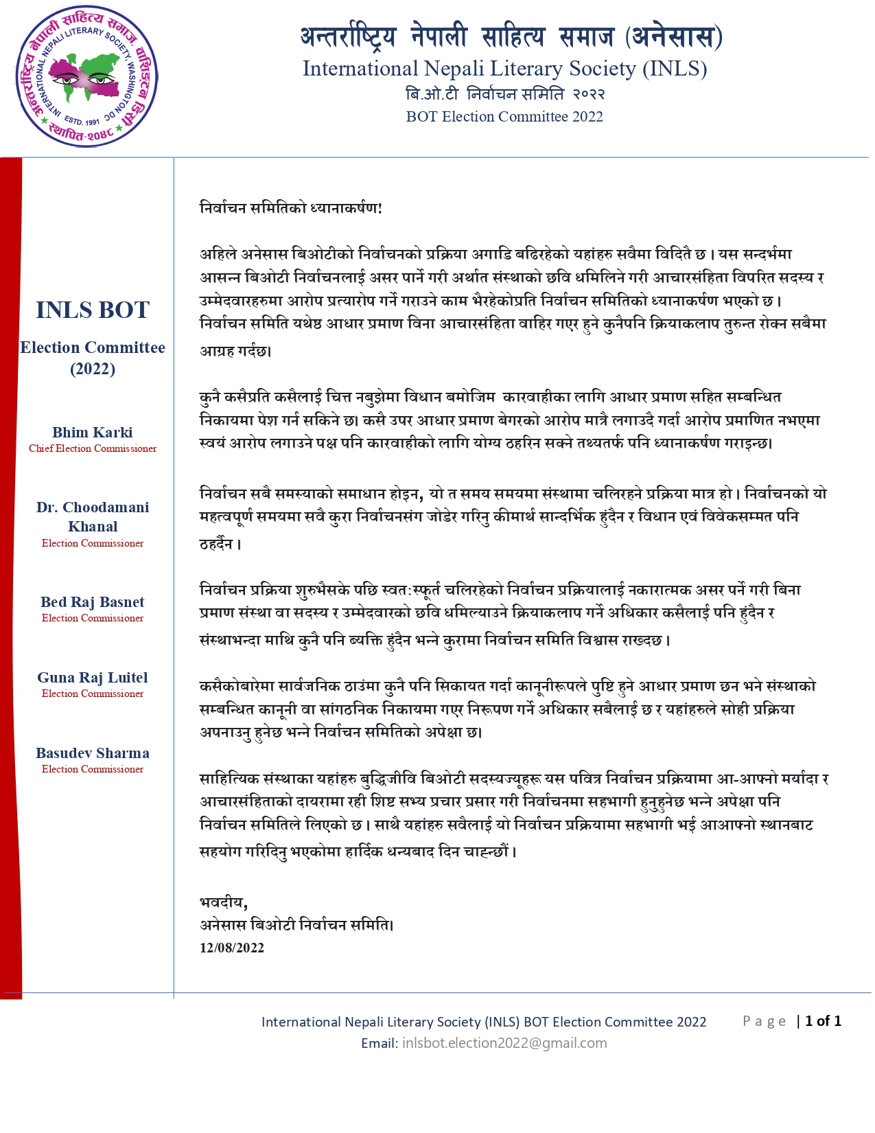 अनेसास बोर्ड अफ ट्रस्टी निर्वाचन समितिको ध्यानाकर्षण