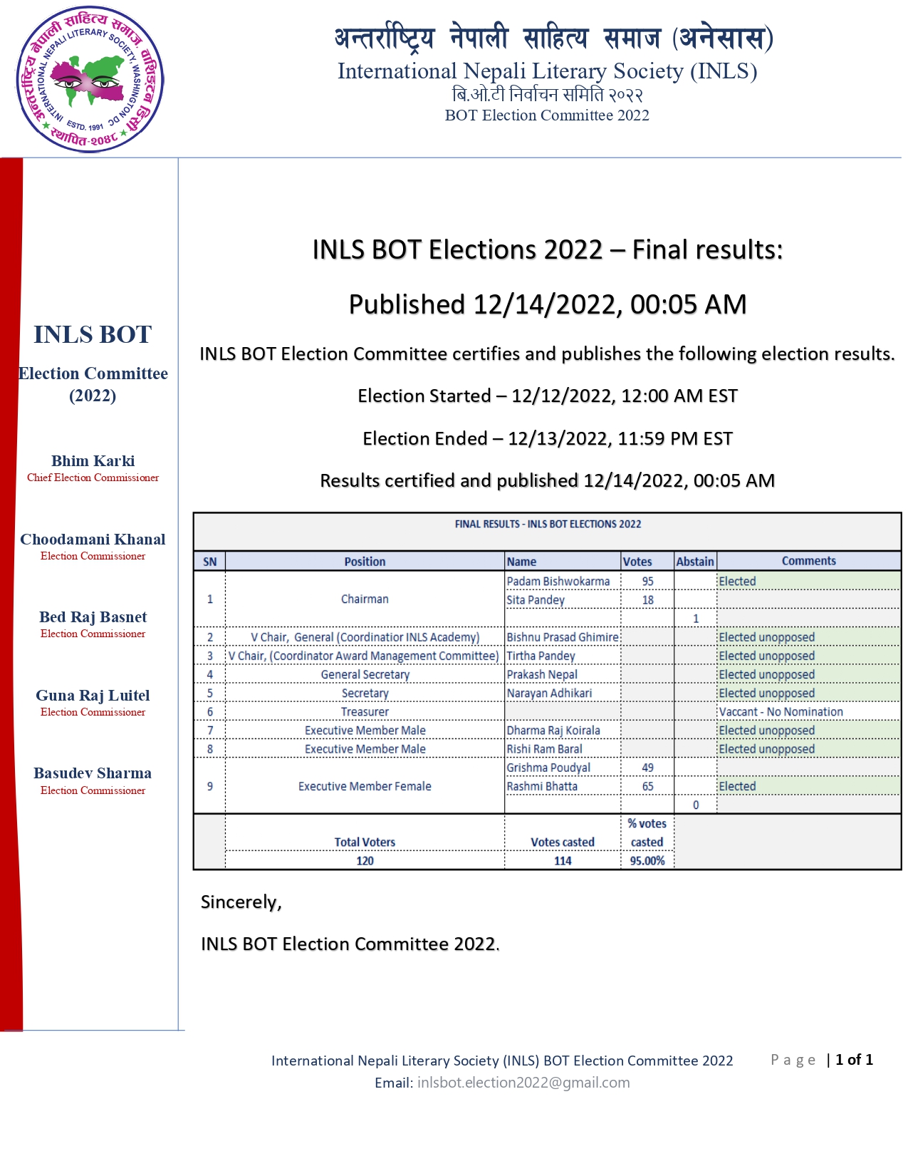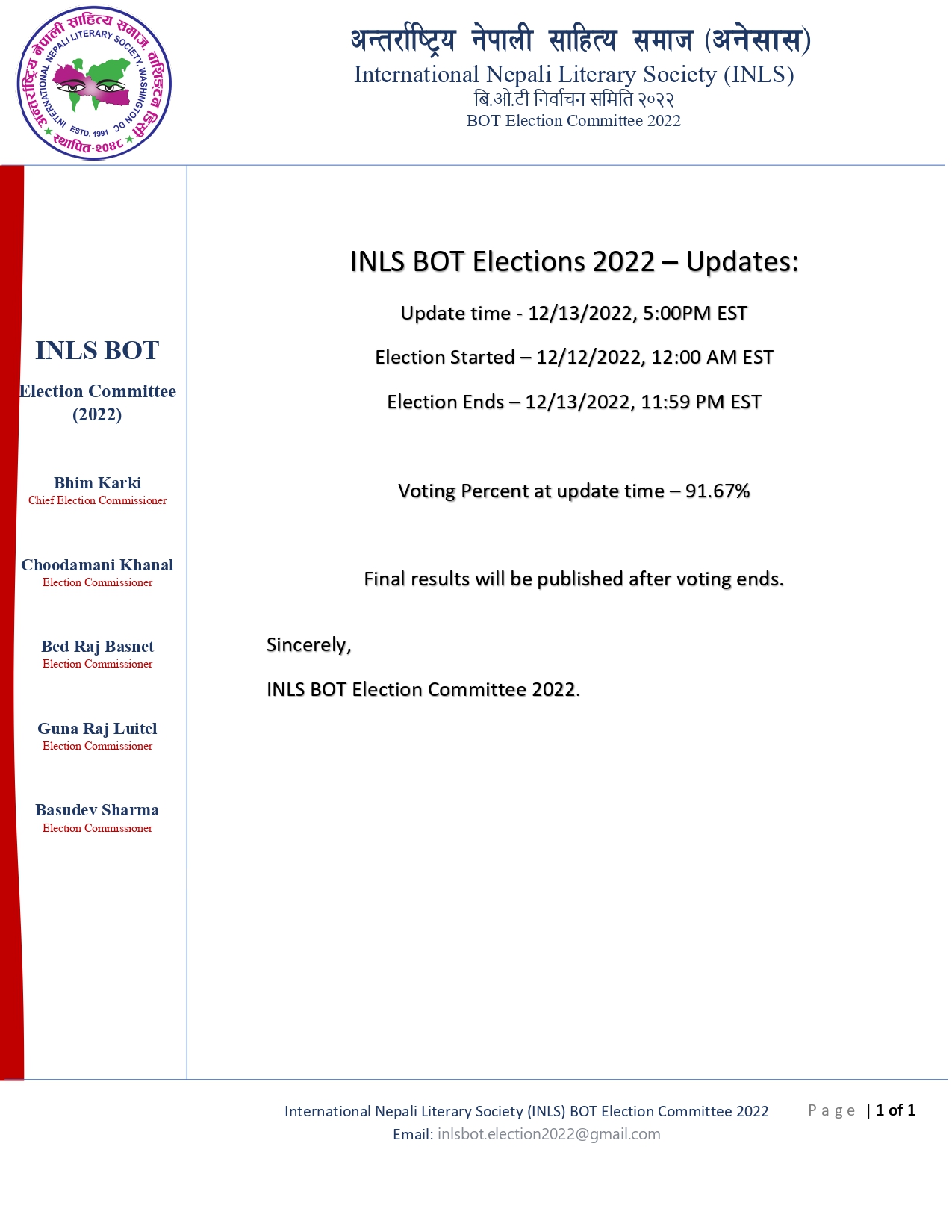 अनेसास बीओटी निर्वाचन समितिले अमेरिकी पूर्वीय समय अनुसार मंगलवार साँझ ६ः२० मा जारी गरेको विज्ञप्ति अनुसार ९१.६७ प्रतिशत मतदान गरेका छन् । सदस्यहरूले मंगलवार राति ११.५९ सम्म मतदान गर्न सक्नेछन् । कूल जम्मा १२२ सदस्य मध्ये १२० जनाले मतदानमा भाग लिन सक्न... Read More