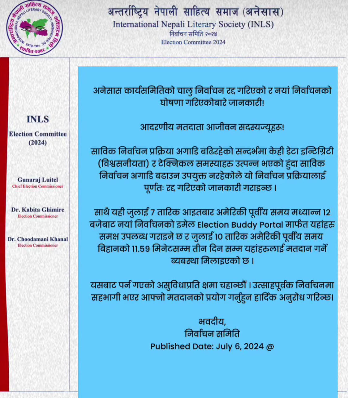 Internatioanal Nepali Literary Society CEC 2024-2026 Election Result
