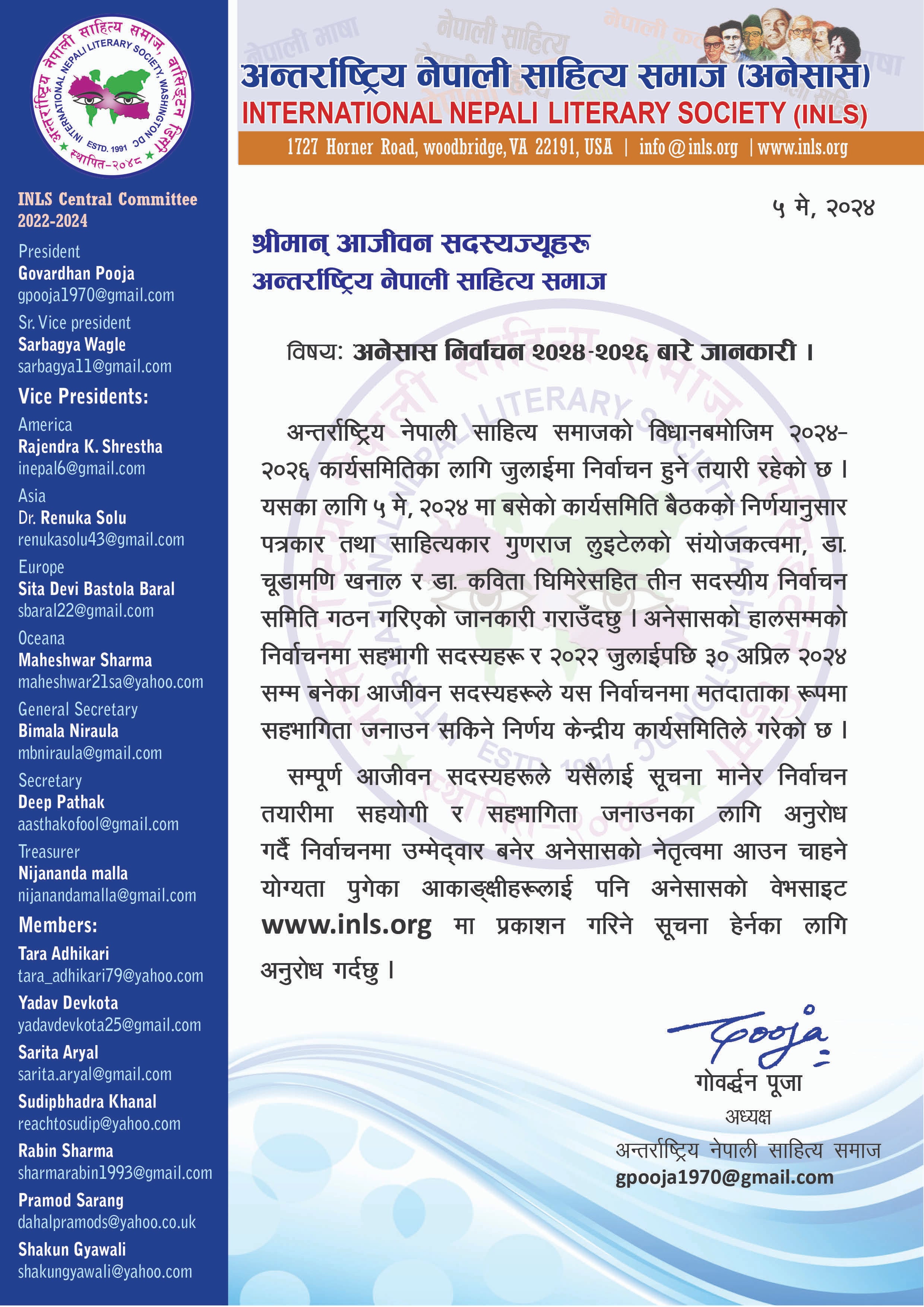 अन्तर्राष्ट्रिय नेपाली साहित्य समाज बोर्ड अफ ट्रस्टीको रिक्त कोषाध्यक्ष पदका लागि निर्वाचन कार्यतालिका प्रकाशित भएको छ । निर्वाचन आयुक्त गुणराज लुइटेल, आयुक्तहरु डा. चुडामणि खनाल र हरिमाया अधिकारीद्वारा सार्वजनिक गरिएको निर्वाचन... Read More
