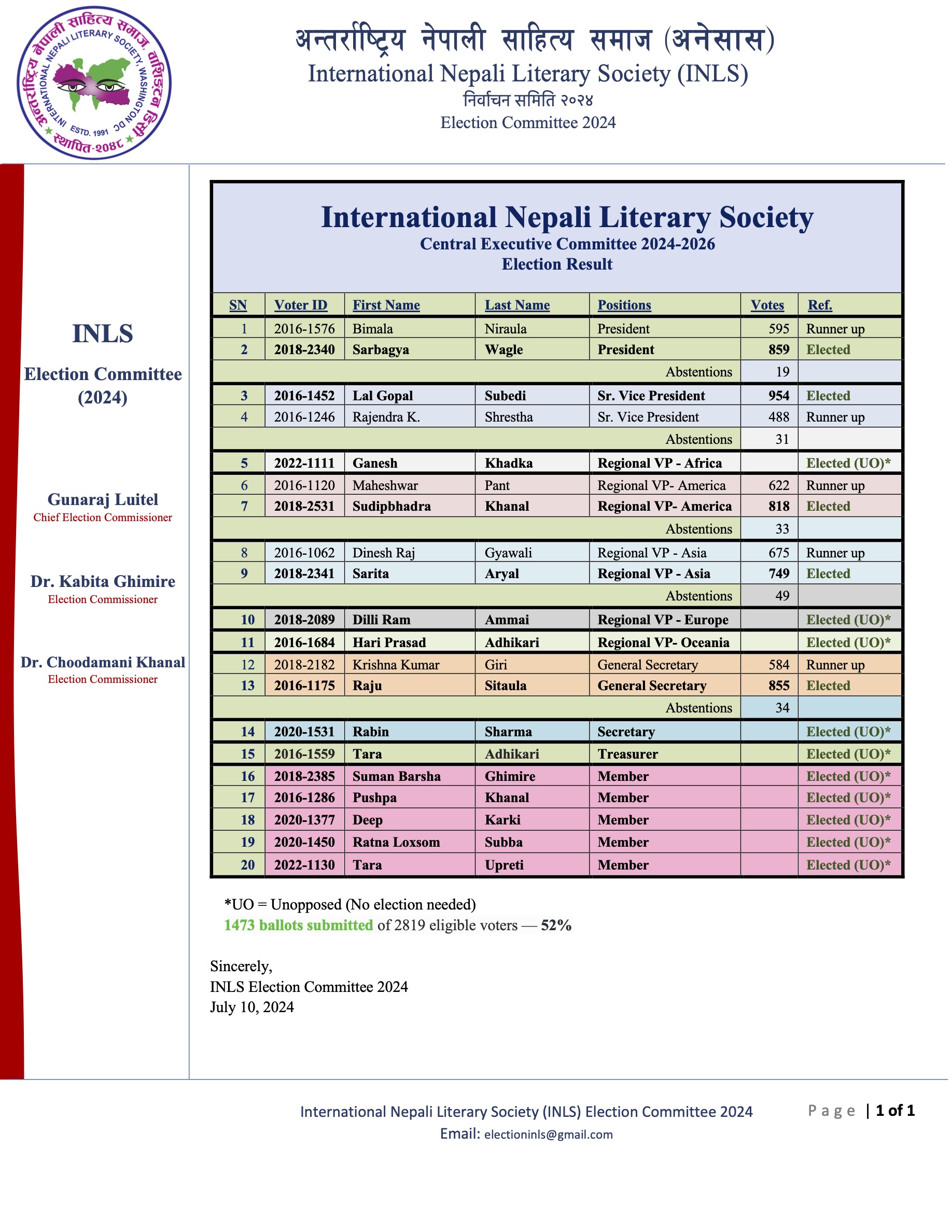 Central Executive Committee Election 2024 Result