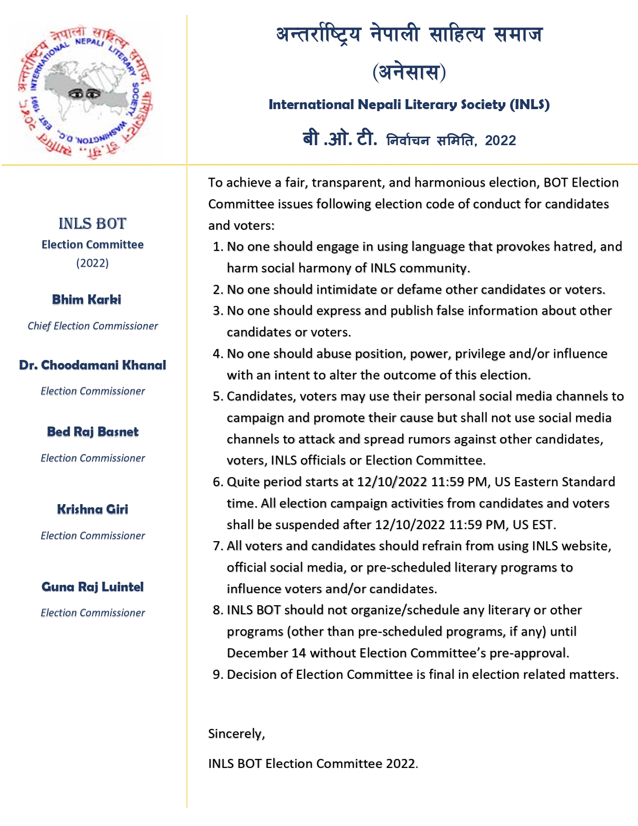 अन्तर्राष्ट्रिय नेपाली साहित्य समाज, बोर्डअफ ट्रस्टिजको २०२२-२०२६ कार्यकालको लागि गठित निर्वाचन समितिबाट जारी गरिएको निर्वाचन कार्यतालिका