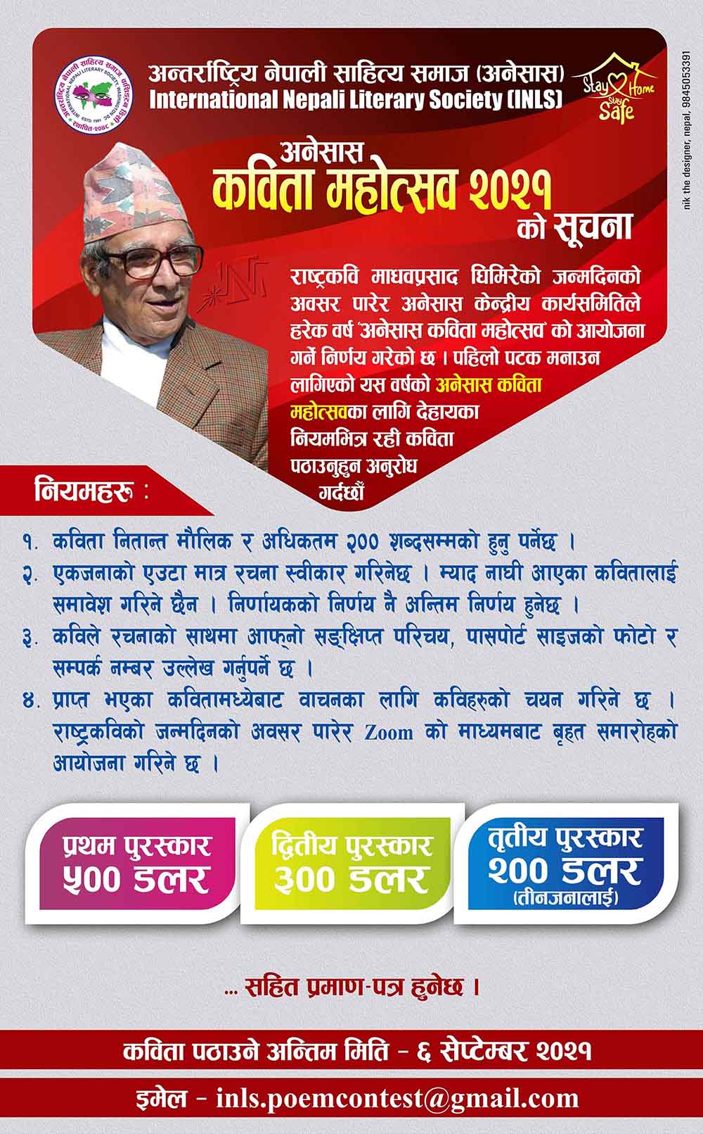 अन्तर्राष्ट्रिय नेपाली साहित्य समाजको केन्द्रीय सल्लाहकारमा सातजना साहित्यकार मनोनित भएका छन् । मनोनित हुनेमा निवर्तमान अध्यक्ष प्रकाश पौडेल 'माइला', साहित्यकार गोविन्द गिरी प्रेरणा(अमेरिका), नियात्राकार प्रतीक ढकाल(नेपाल) , साहित्यकार भारती गौतम(अमेरिका), साहित्यकार भीमसेन सापकोटा (आचार्य राजन-अष्ट्रेलिया), साहित्यकार डा. रुपक श्रेष्ठ( बेलायत) र प्रा.डा. सावित्री मल्ल कक्षपती(नेपाल) रहेका छन् ।